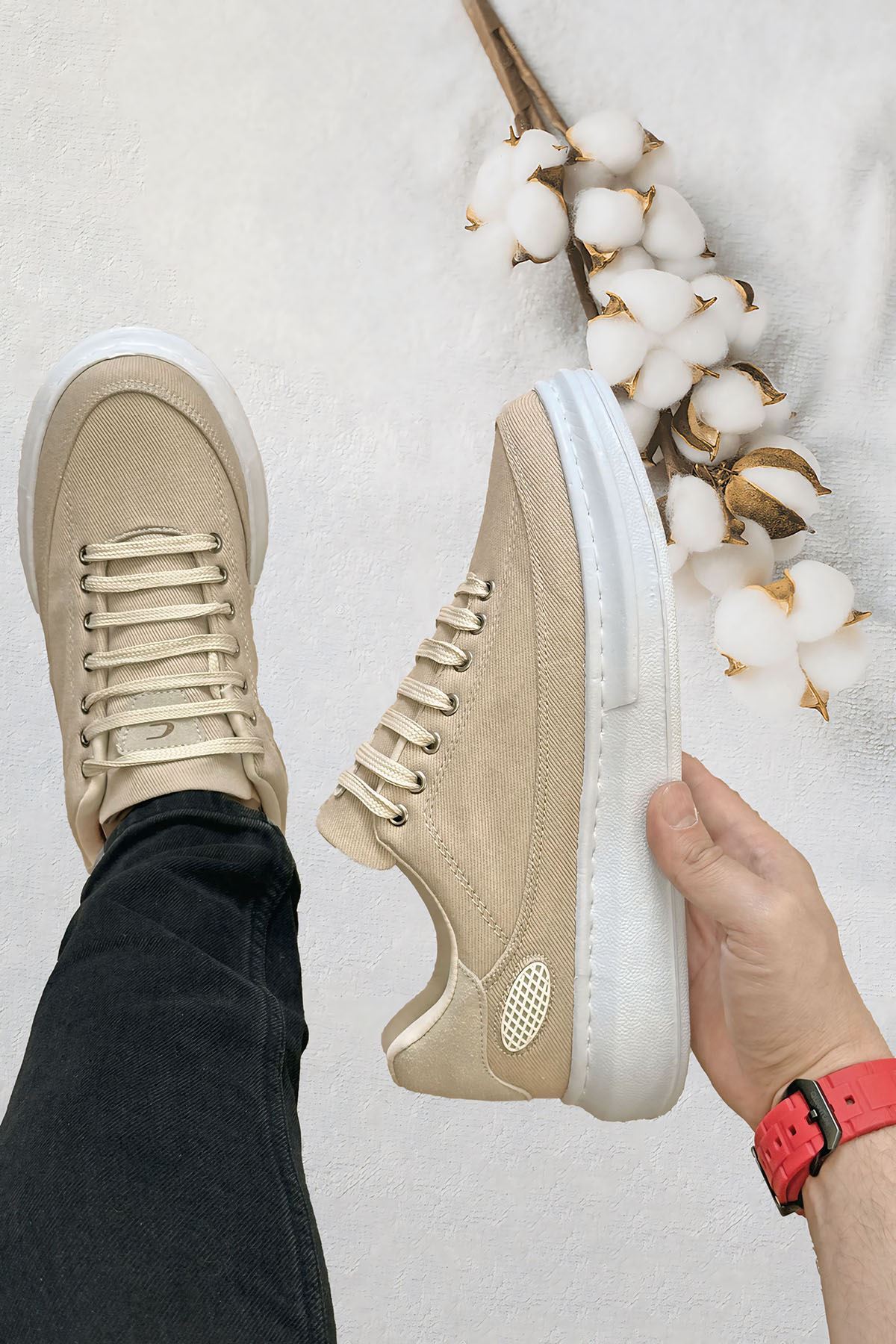 Boy Uzatan Gizli Topuklu Bej Keten Monarch Erkek Günlük Ayakkabı GT-0073