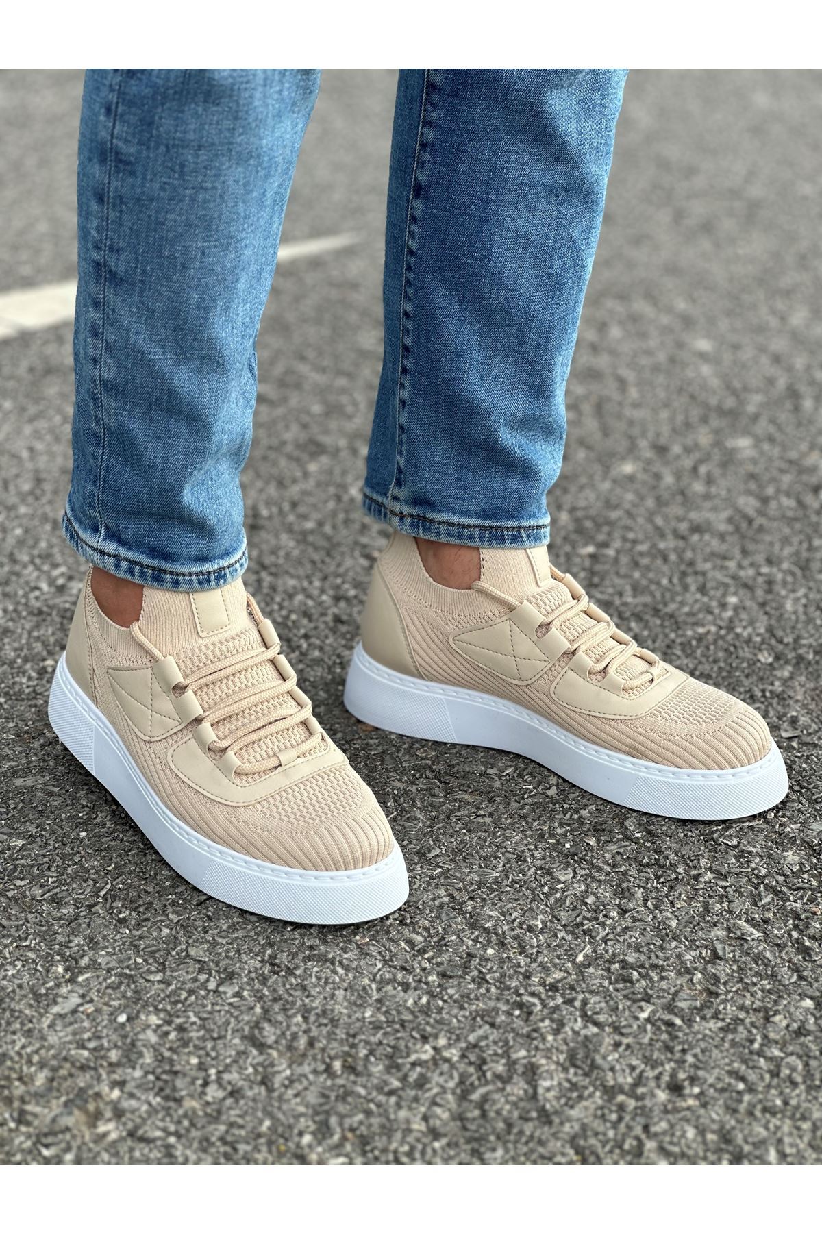 Model adı: Boy Uzatan Gizli Topuklu Bej Triko Erkek Ayakkabı GT-0008