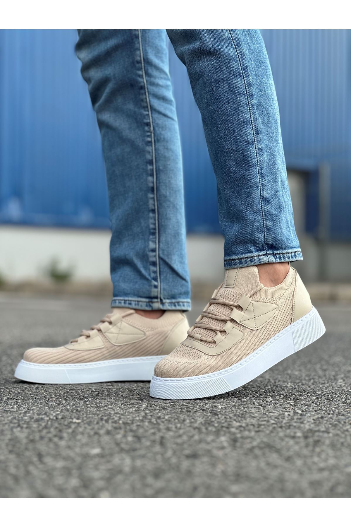 Boy Uzatan Gizli Topuklu Bej Triko Erkek Ayakkabı GT-0008