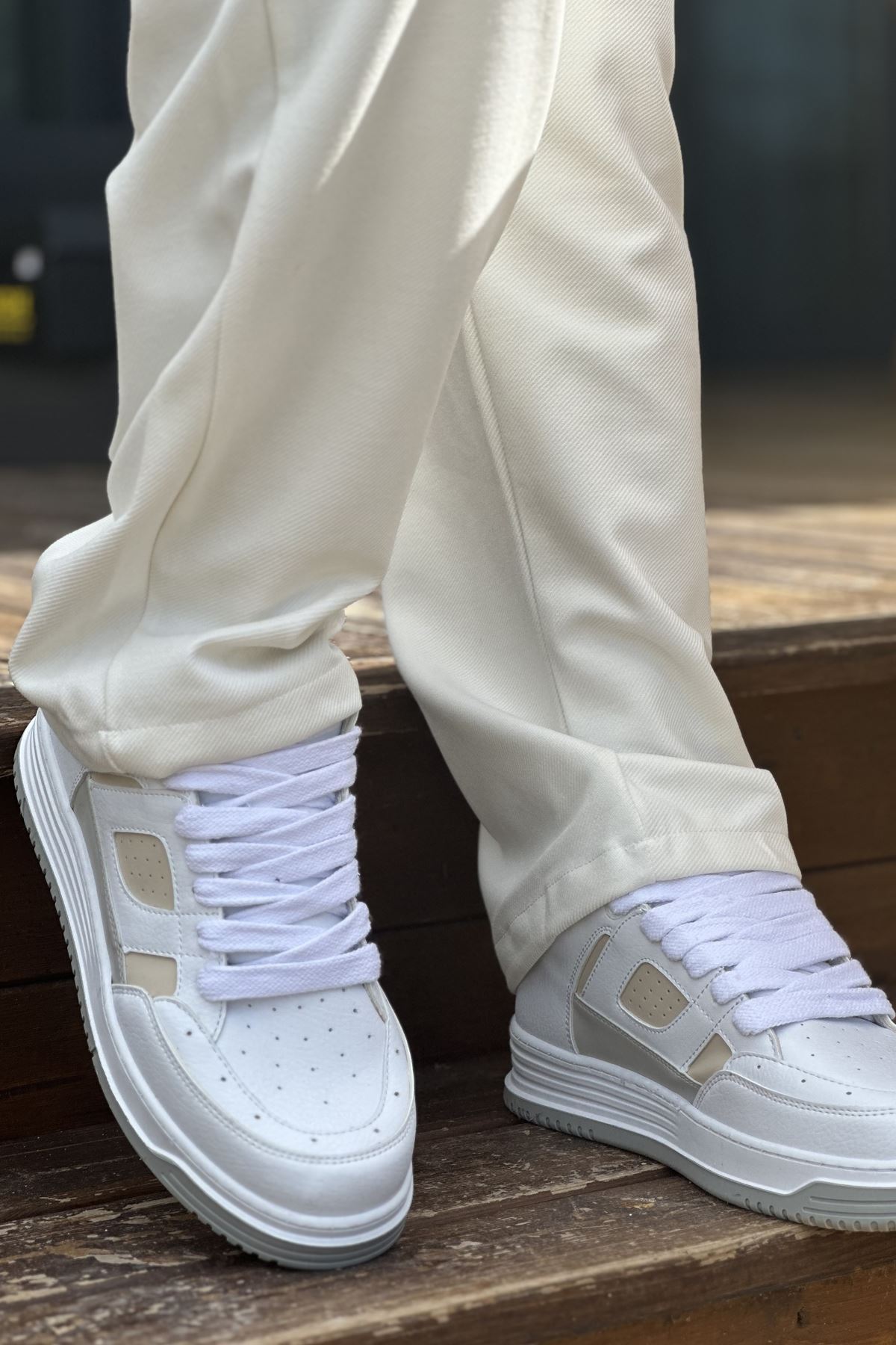 Model adı: Boy Uzatan Gizli Topuklu Beyaz Bej Erkek Ayakkabı GT-0018