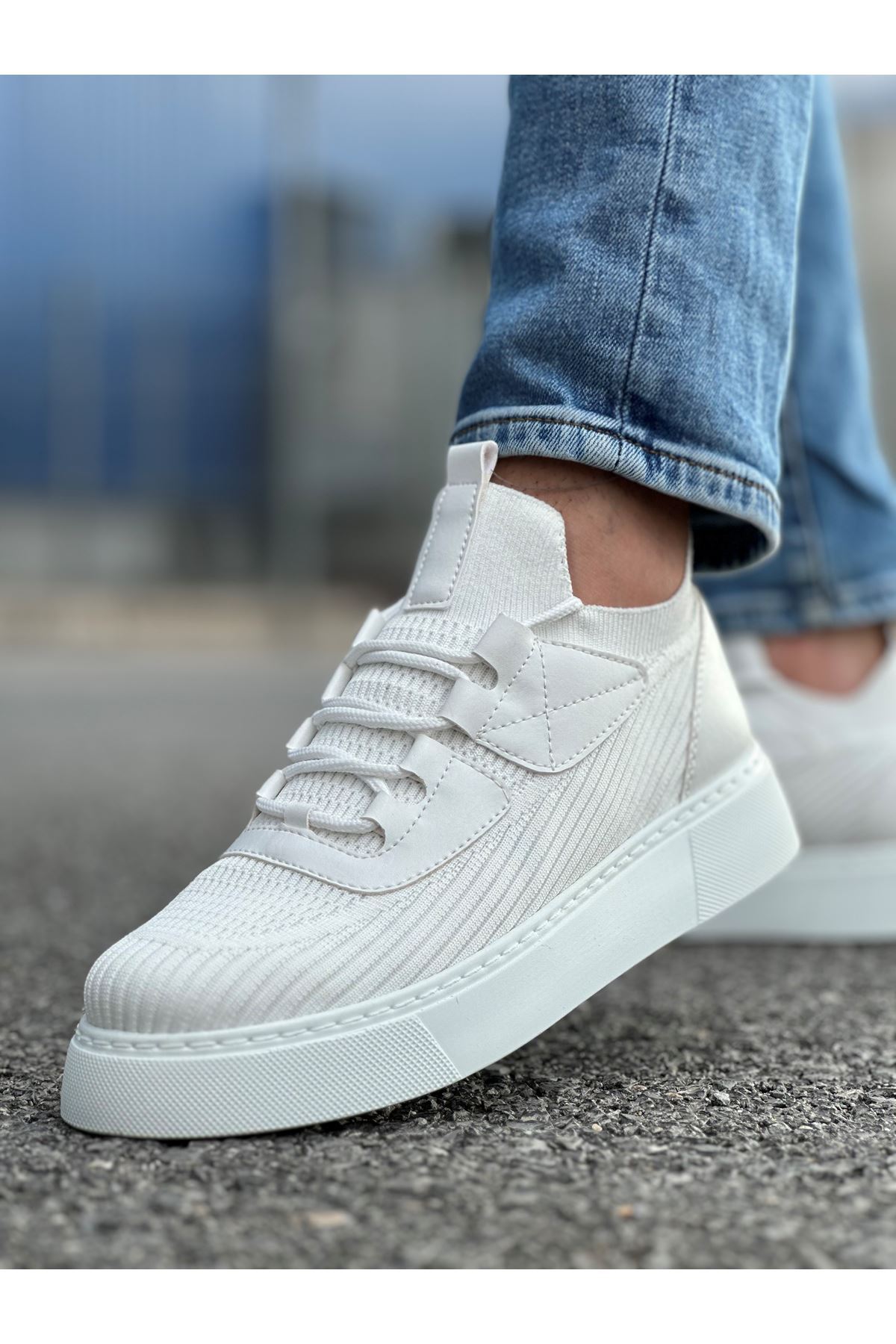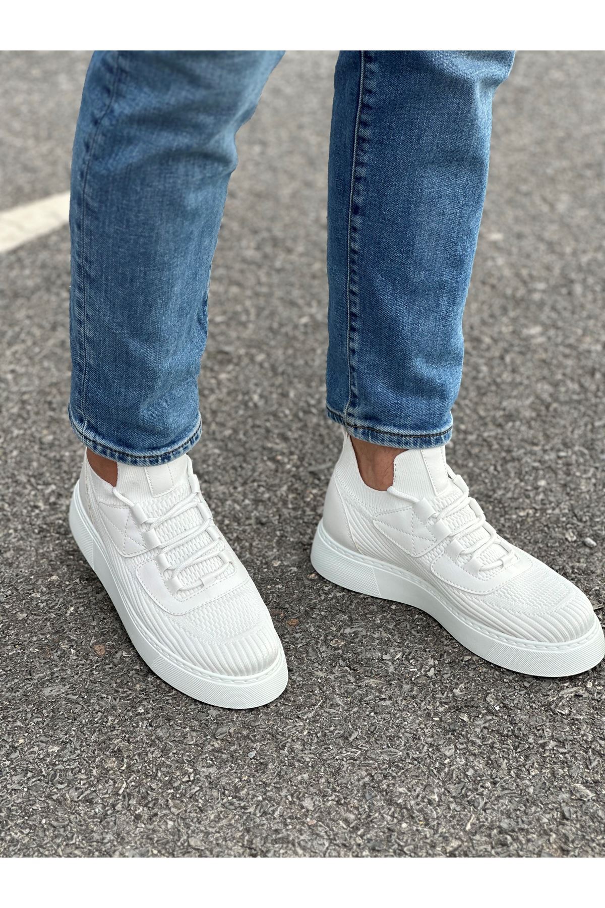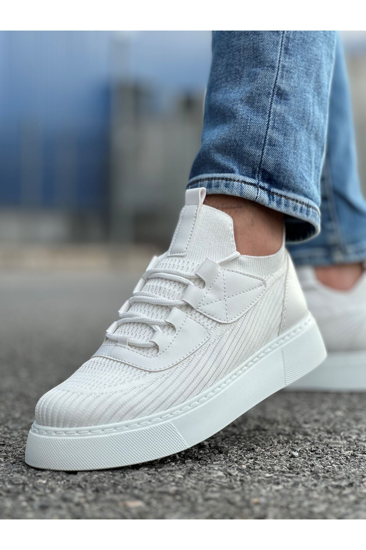 Model adı: Boy Uzatan Gizli Topuklu Beyaz Triko Erkek Ayakkabı GT-0009