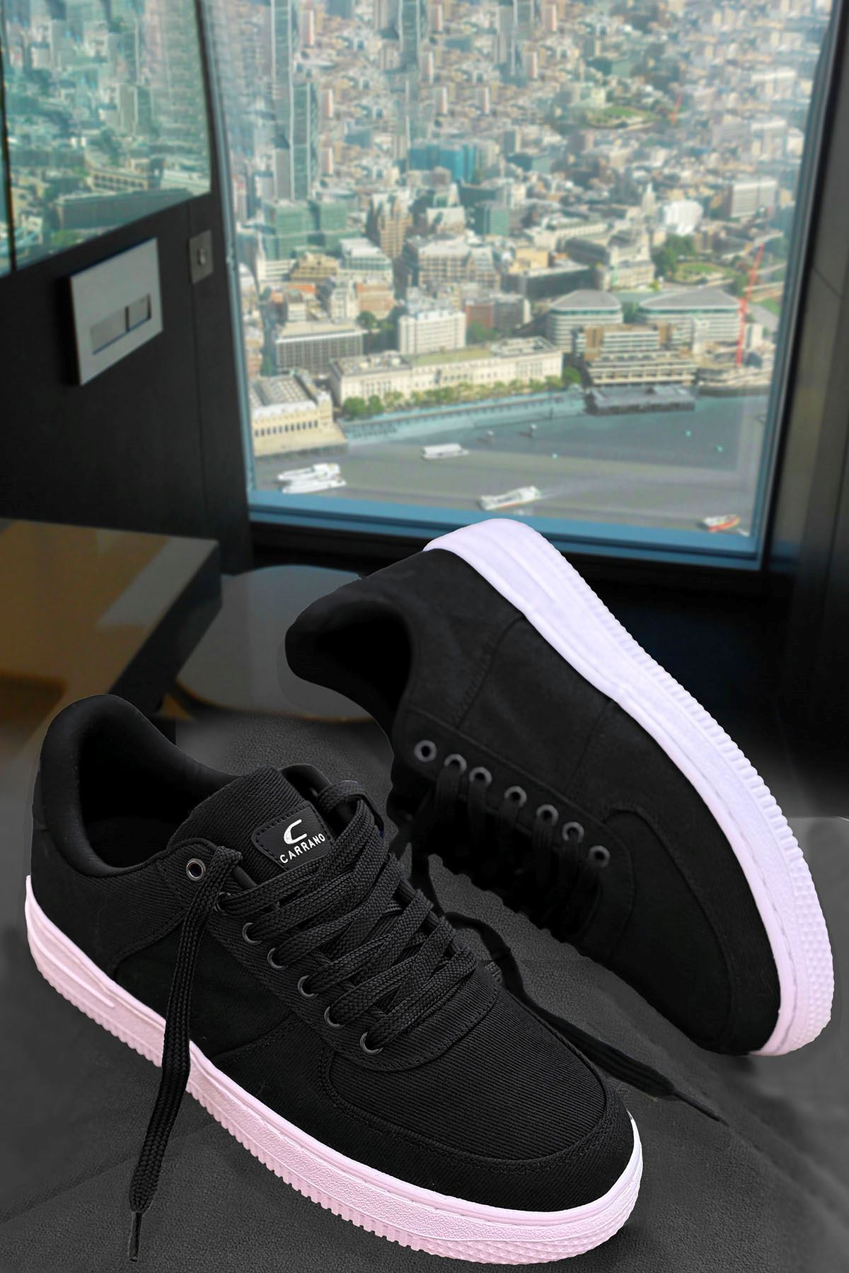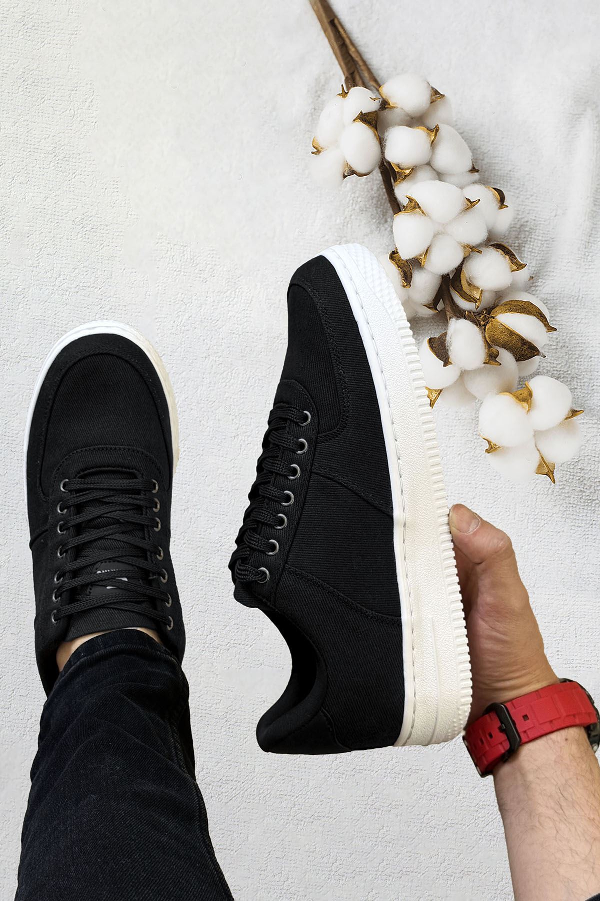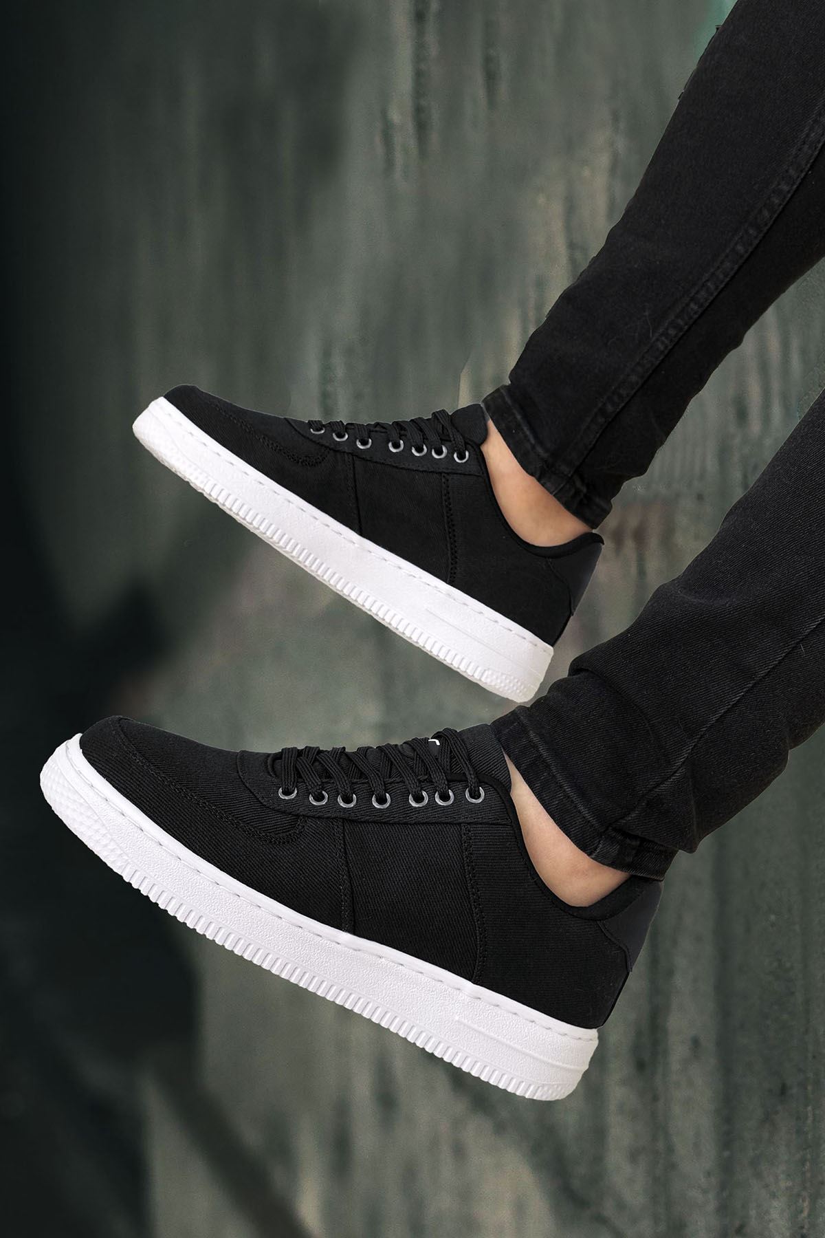 Boy Uzatan Gizli Topuklu Siyah Beyaz Keten Erkek Günlük Ayakkabı GT-0069