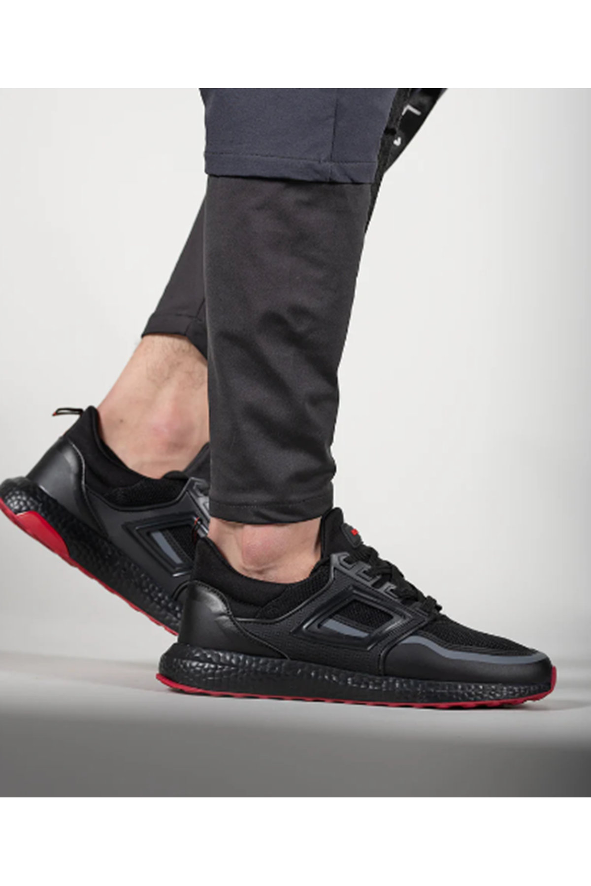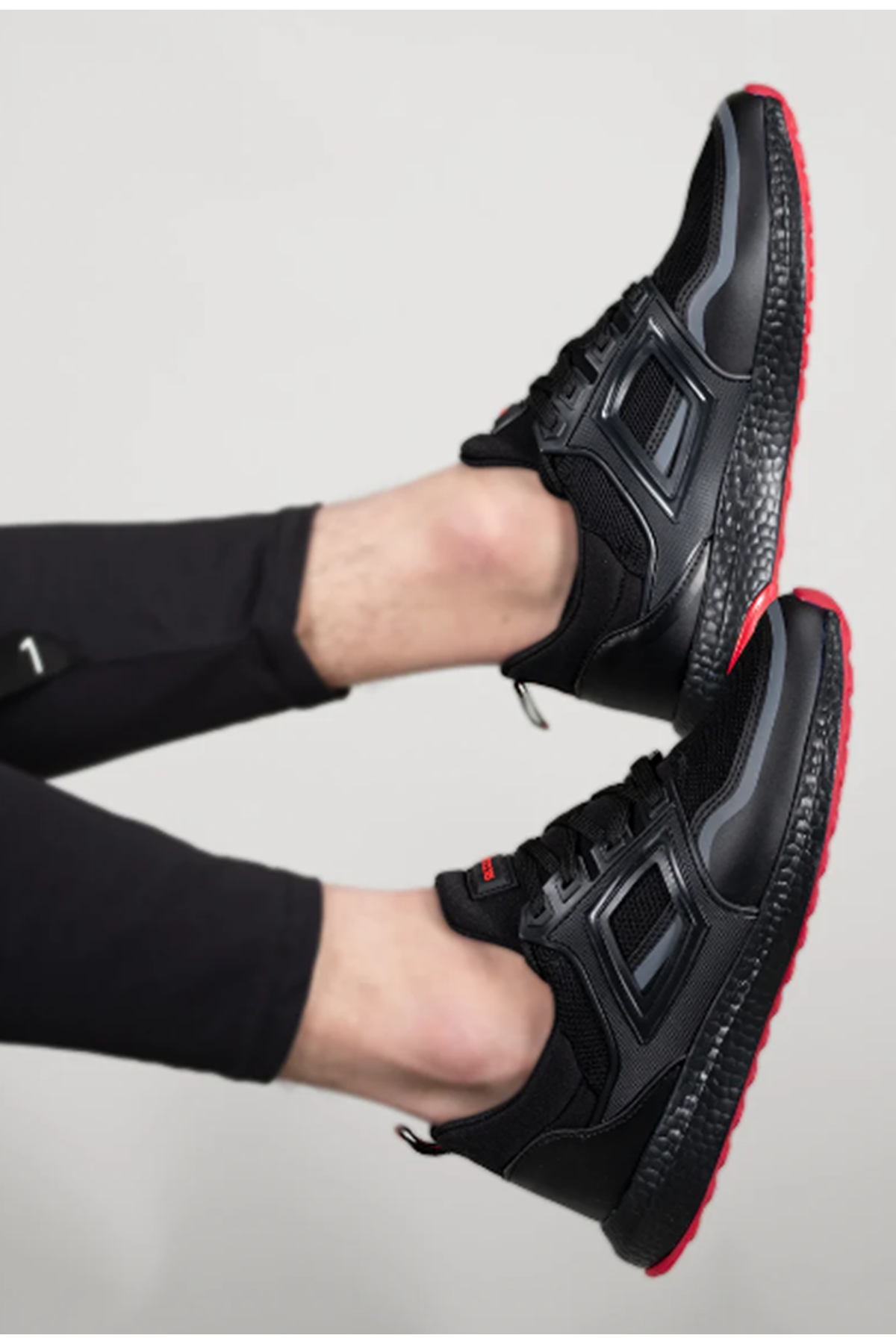 Boy Uzatan Gizli Topuklu Siyah Kırmızı Detay Spor Ayakkabı GT-0094