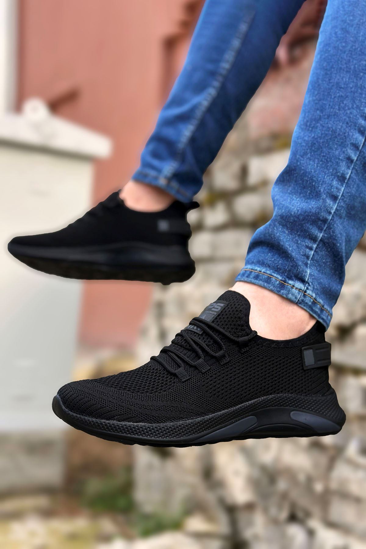 Boy Uzatan Gizli Topuklu Siyah Örme Triko Spor Ayakkabı GT-0087